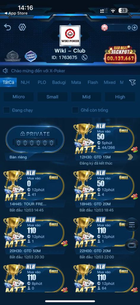 CLB Wiki Poker mang đến hàng trăm giải đấu mỗi tuần với tổng GTD cực lớn, phù hợp cho mọi cấp độ người chơi. Tham gia ngay để trải nghiệm những sân chơi cạnh tranh, phần thưởng hấp dẫn và cơ hội bứt phá mỗi ngày!